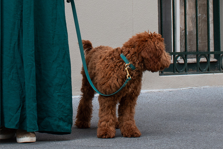 They are handmade from waterproof plastic webbing, and beautiful metal hardware. If the leash gets dirty or wet, just rinse it under warm water and soap-and it will look brand new again! Oh and did we mention? They are also odor free, which means that they do not stink!