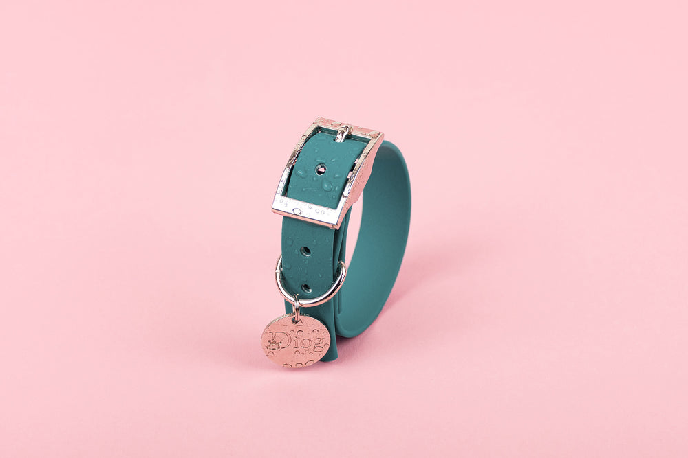 They are handcrafted from waterproof plastic webbing and beautiful metal hardware. If the collar and leash get dirty or wet, just rinse them under warm water and soap—they'll look brand new again! Oh, and did we mention? They are also odor-free, so they don't stink!