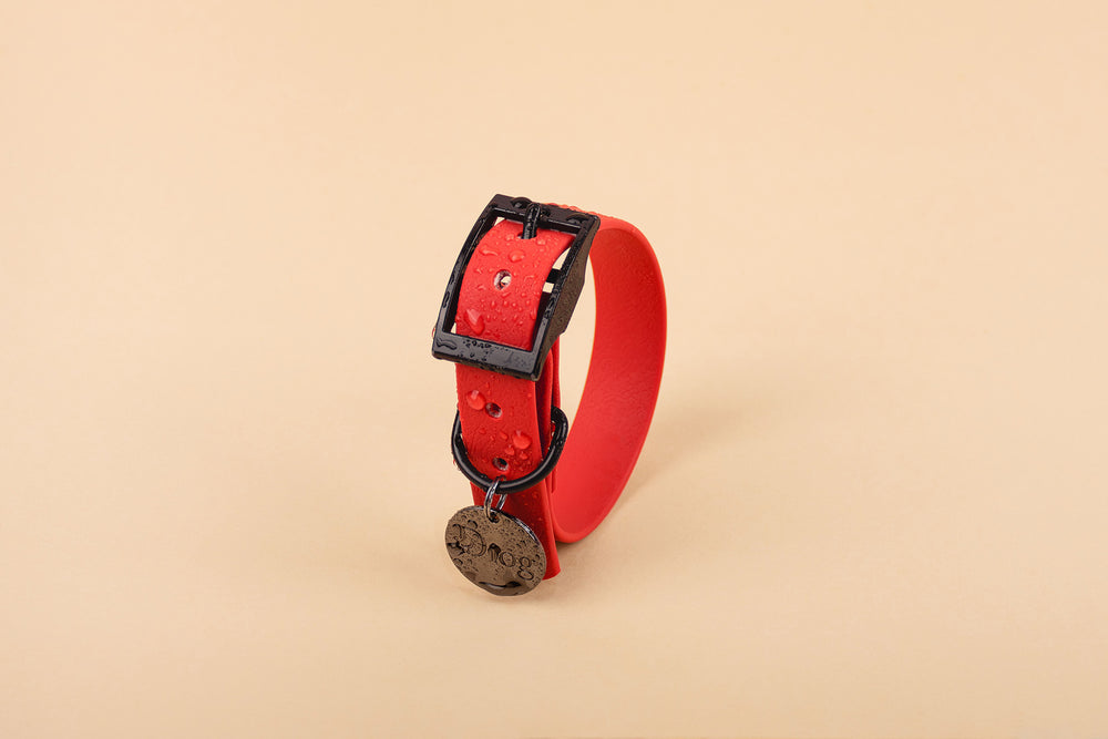 They are handcrafted from waterproof plastic webbing and beautiful metal hardware. If the collar and leash get dirty or wet, just rinse them under warm water and soap—they'll look brand new again! Oh, and did we mention? They are also odor-free, so they don't stink!